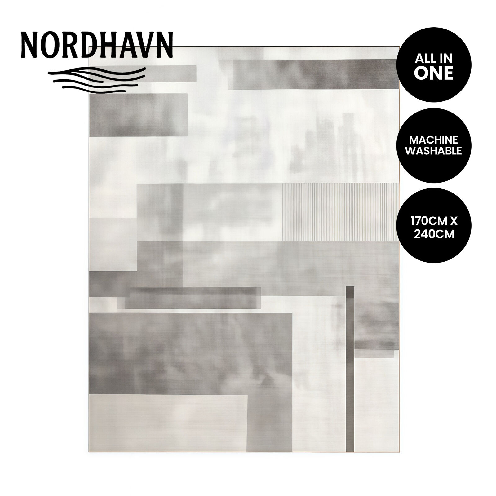 Nordhavn Soft Modern Floor Carpet Area Rug, Grey Gradient Washable Rug, Non-Slip, Extra Large 170x24