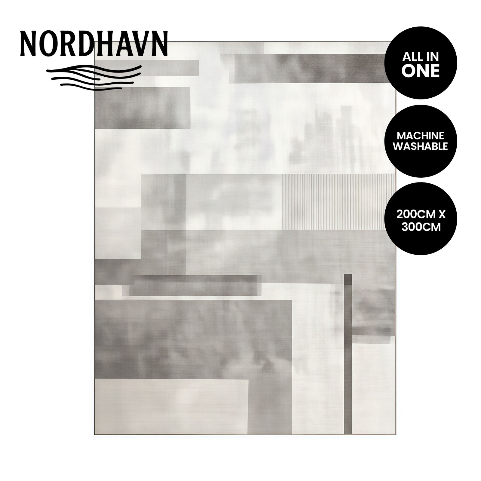 Nordhavn Soft Modern Floor Carpet Area Rug, Grey Gradient Washable Rug, Non-Slip, Extra Large 200cmx