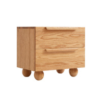 American Solid Oak Wood Bedside Table, Side Storage End Table w/ 2 Drawers, Natural Wood Finish Organizer, Minimalist Nightstand w/ Tapered Legs