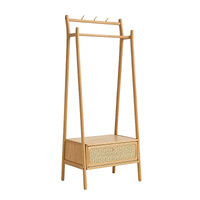 Solid Wood Clothes Rack Stand American Oak Garment Hanger with Hooks and Shelves for Coat Hat Shoe Storage in Entryway Bedroom or Apartment