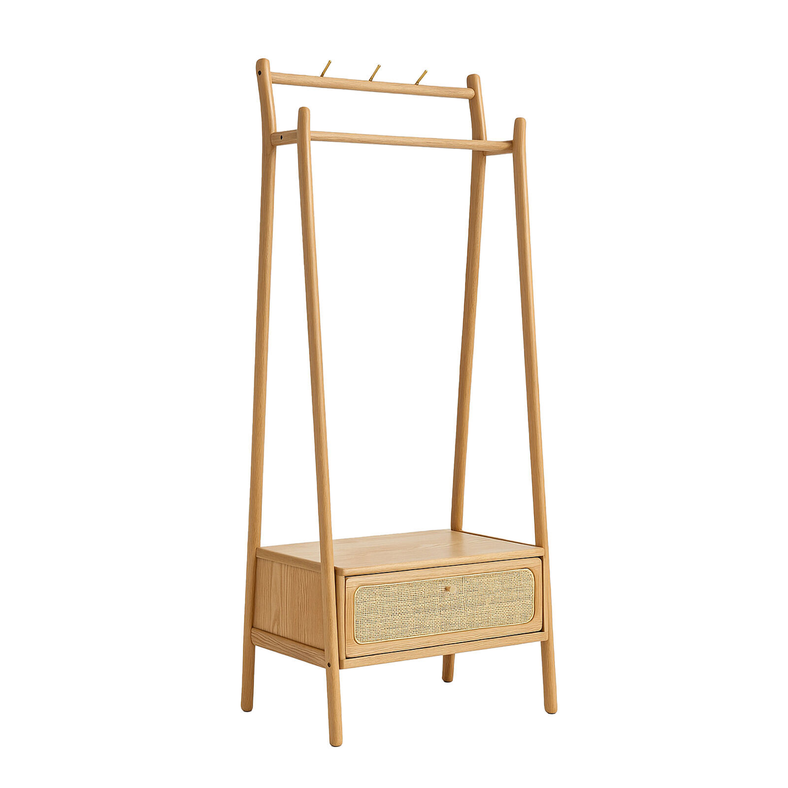 Bring natural charm, modern style, and smart storage to your home with this modern clothes rack, crafted from solid American oak timber. Designed for compact living, it features a sturdy timber frame, multiple hanging hooks, and open storage shelves—perfect for entryways, bedrooms, apartments, or guest rooms.