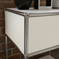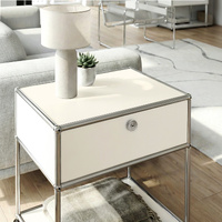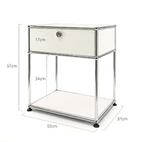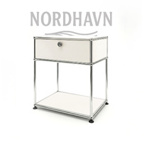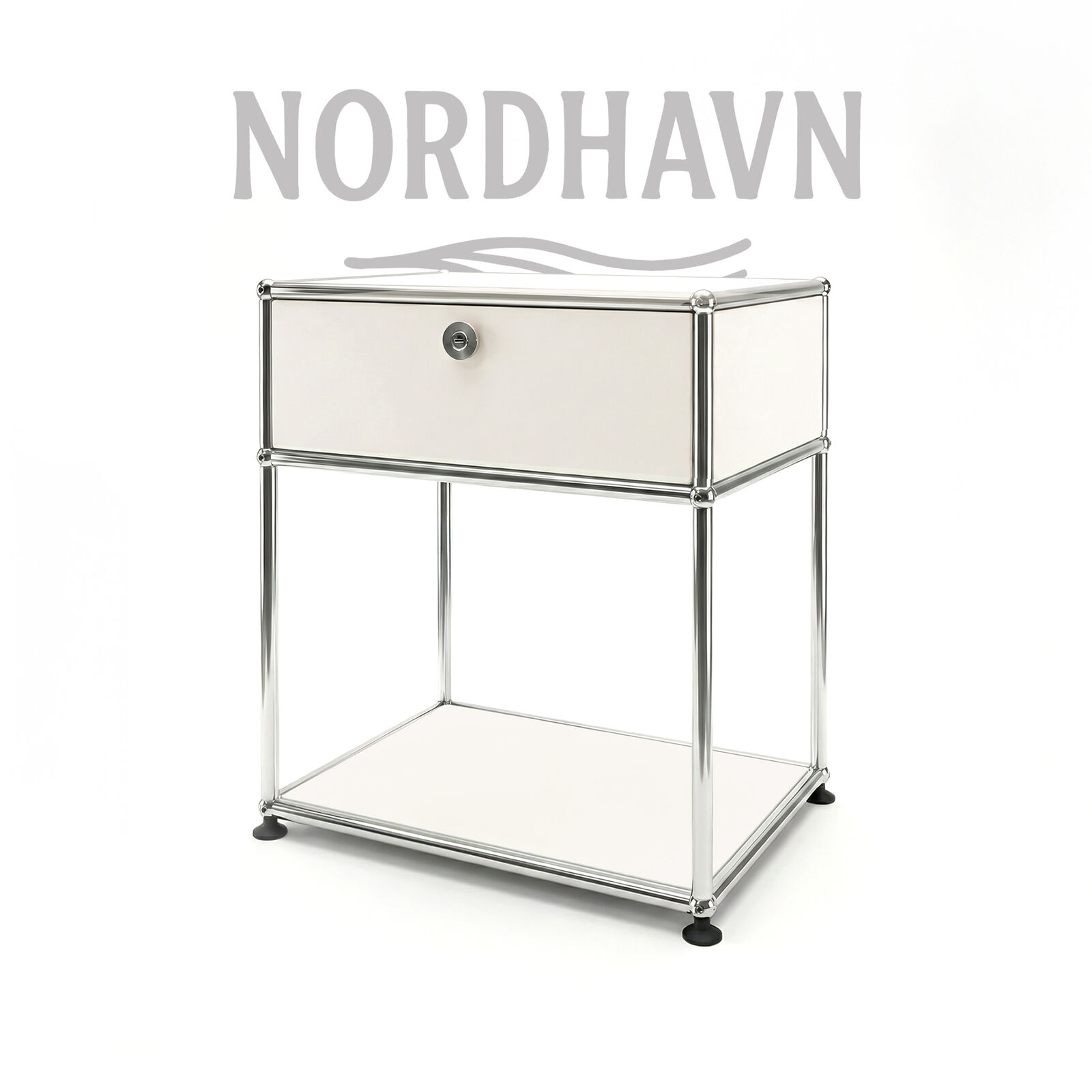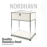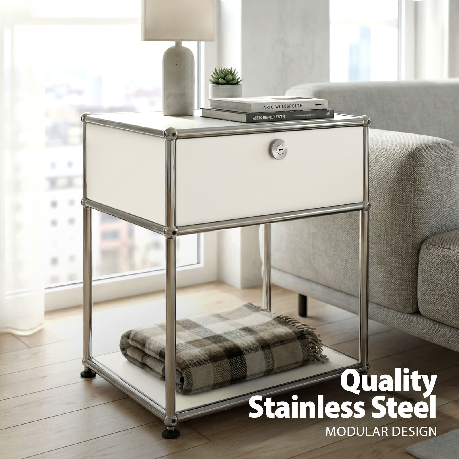 Nordhavn Stainless Steel White Bedside Table, Minimalist End Table, Modern Night Stand Steel Frame U