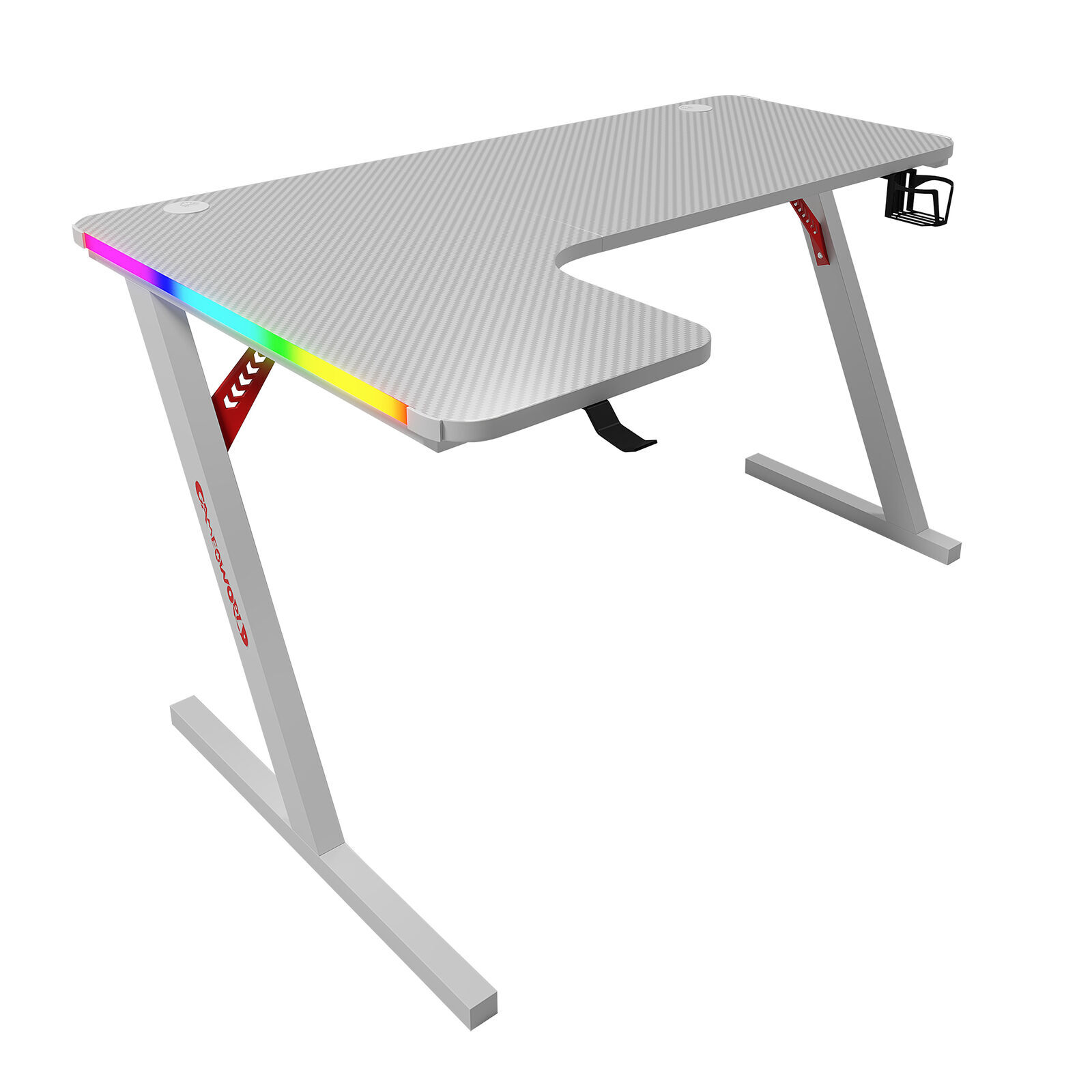 Level up your workspace with a modern computer desk built for style, comfort and everyday versatility. Whether you're working, gaming or studying, this versatile desk fits seamlessly into any interior style from minimalist setups to fully equipped workstations. Built with a carbon fiber finish and a reinforced metal frame, it offers a spacious desktop ideal for monitors, laptops and accessories. Its smart design suits compact areas and can be configured to maximise corner space. Clean lines, a sleek surface and integrated RGB light strips provide both visual appeal and an immersive gaming experience.
