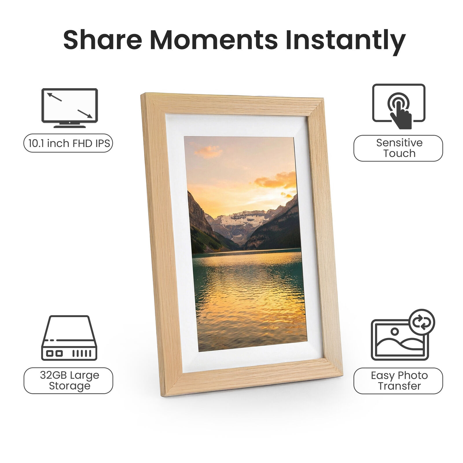 - 10.1 Inch Digital Frame Display - Enjoy crystal-clear 1980 × 1080 resolution, vivid colors, and a 178° wide viewing angle for sharp and lifelike photos.